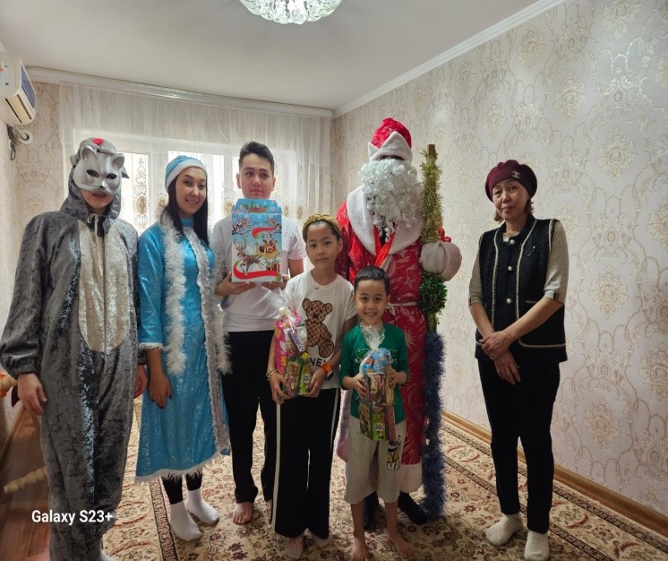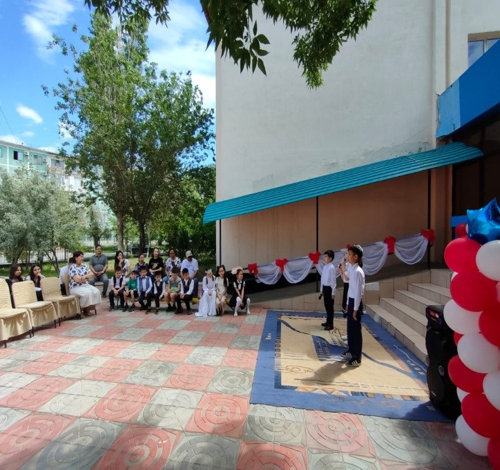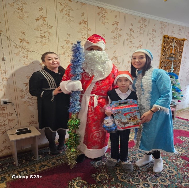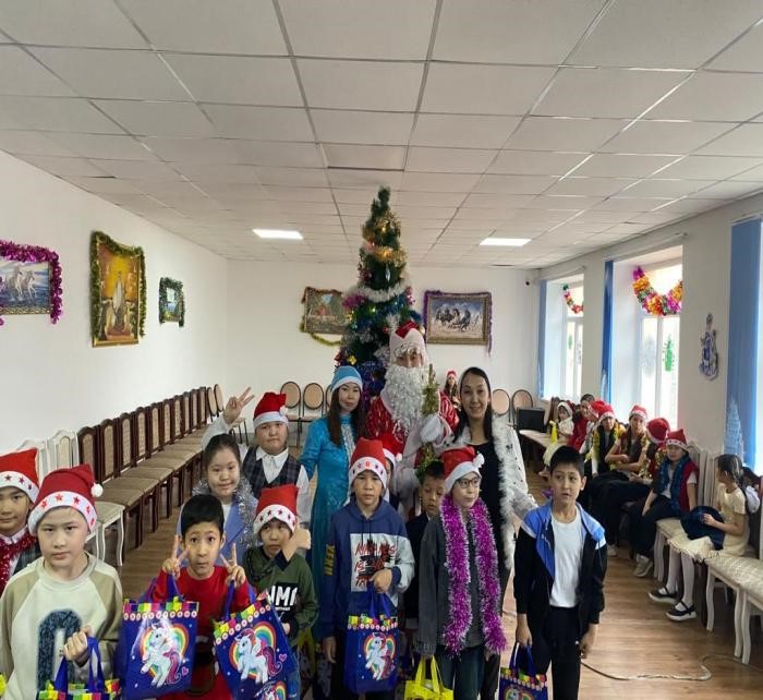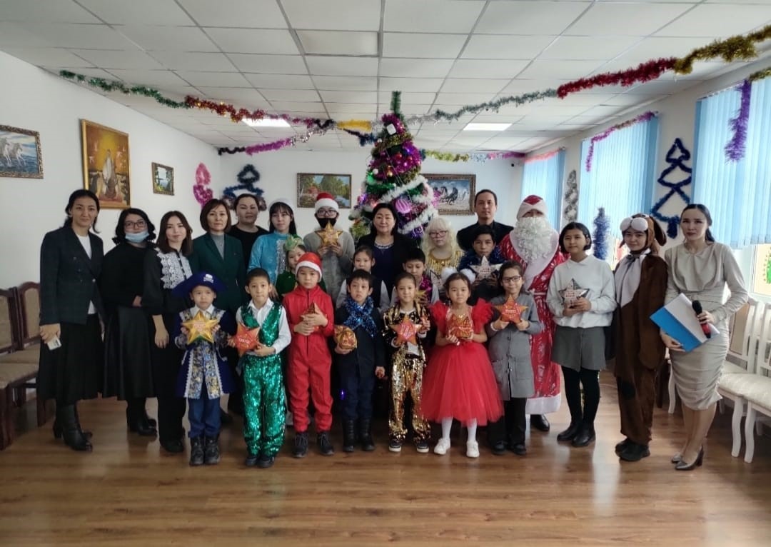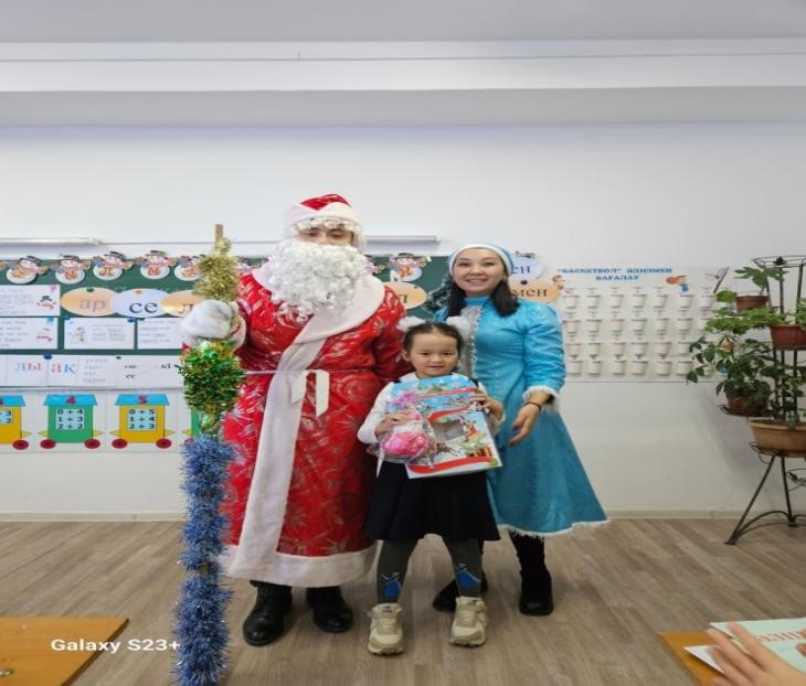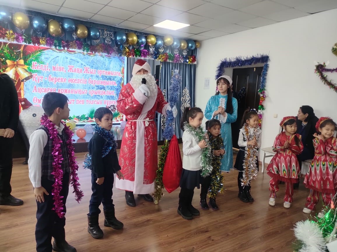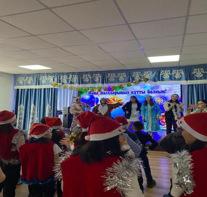 ЕББҚ ететін оқушыларды жаңа жылмен құттықтау концертін өткізу үшін Аяз ата мен ақшақар және аниматорлар шықырылды. Олар балаларды билетіп, тақпақ айтқызды, сыйлықтар таратты. Мектеп-лицей басшысы Мухашова Рита апай сөз сөйлеп, балаларды құттықтады және қалалық және облыстық байқаулардан орын алған оқушыларды марапаттады. Тәлімгер Ұлжан апай бастаған белсенді оқушылар да ән салып, би биледі.. Оқушылармен бірге олардың білім беретін мұғалімдері де қонаққа шақырылды.