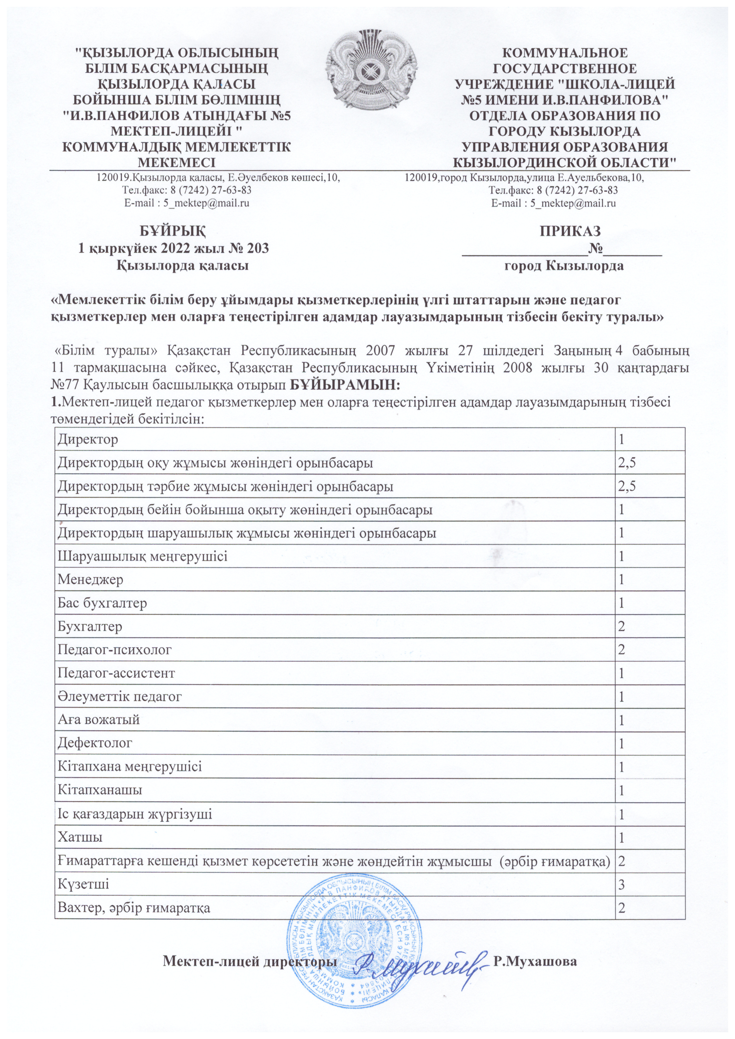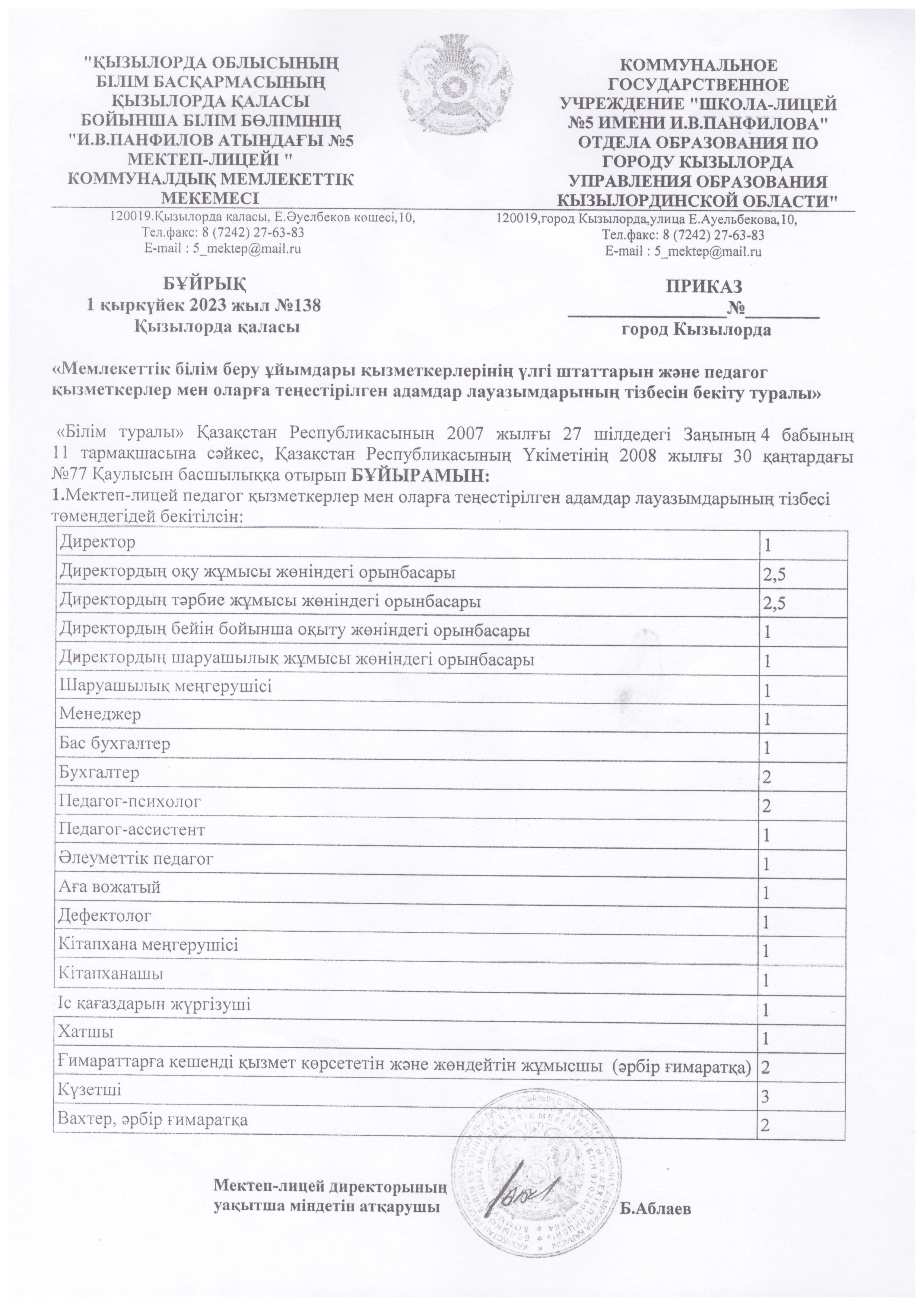 Штаттық кесте