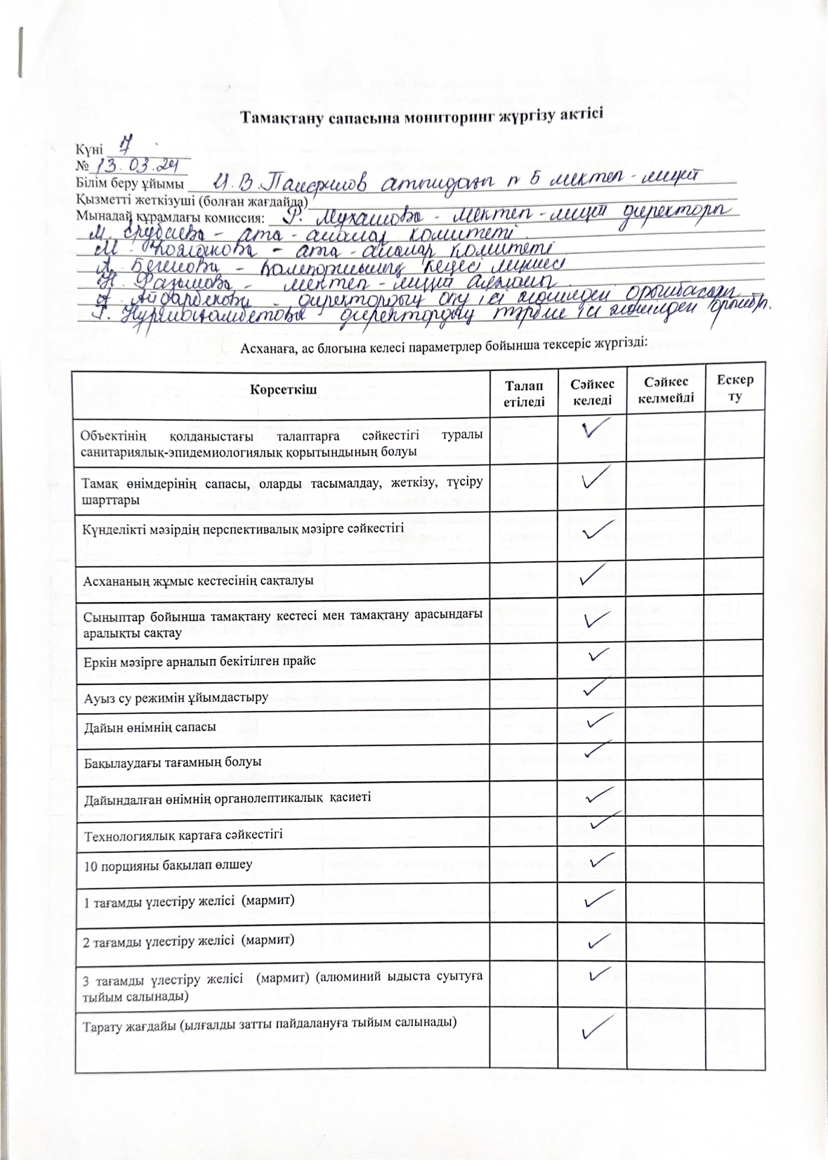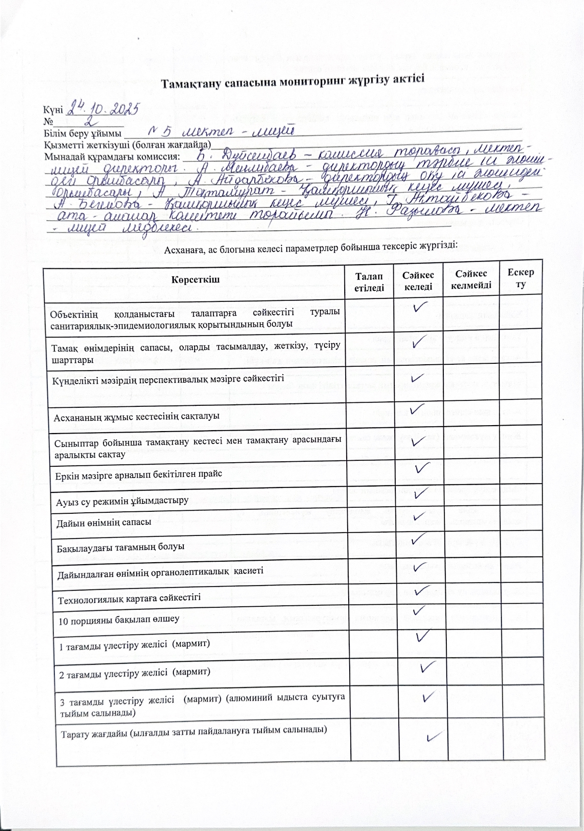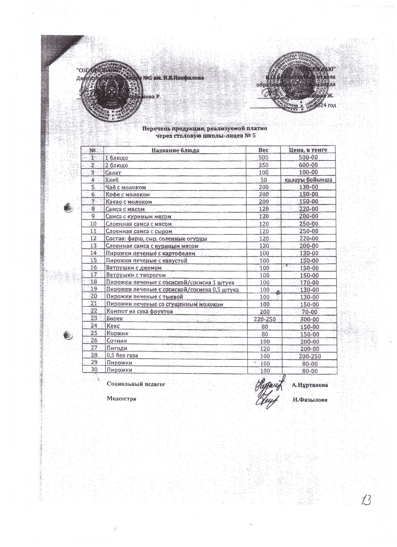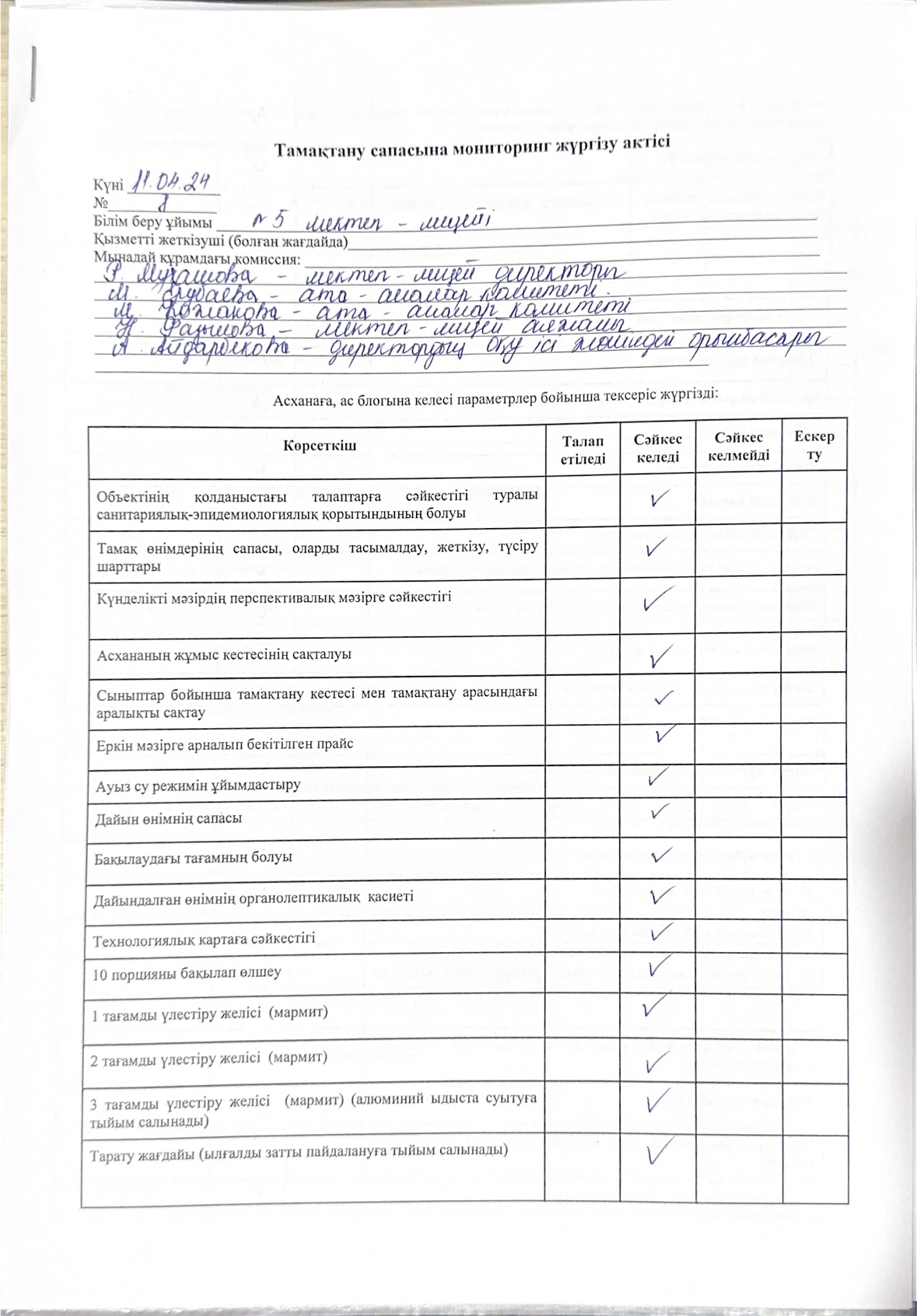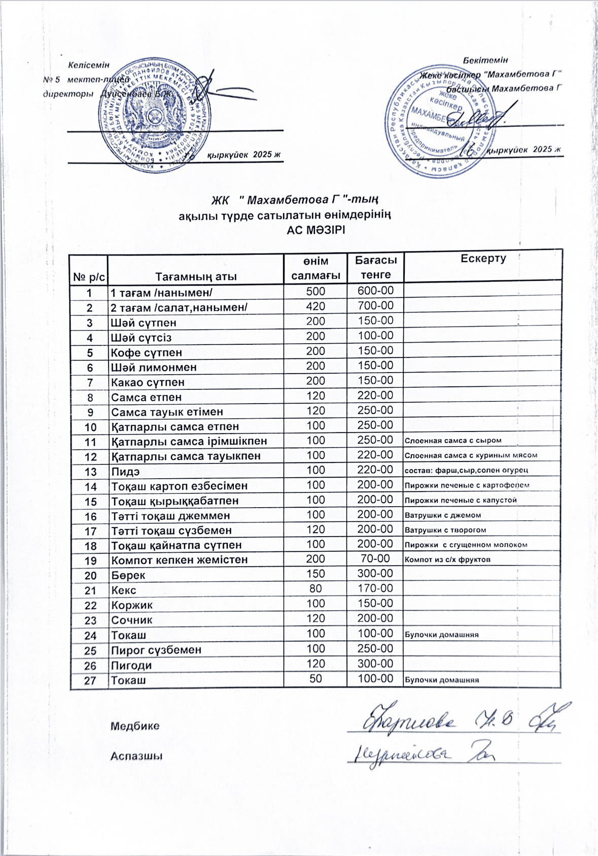 | 1 | Жалпы білім беретін ұйымдарда мектеп оқушыларының тағамын ұйымдастыруға арналған 4 апталық ас мəзірі (жаз-күз ) |